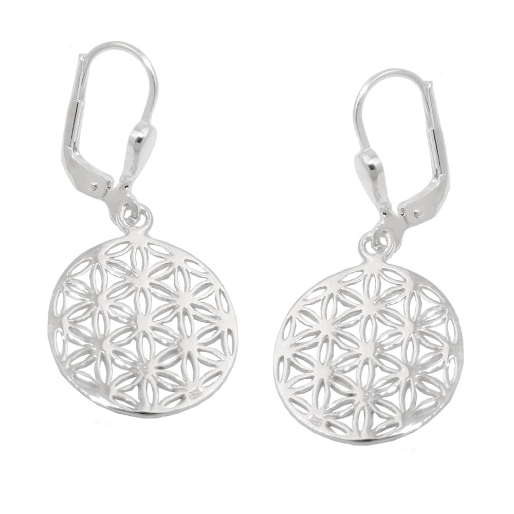 Diese wunderschönen Ohrringe mit Klappbügel in Sterling Silber 925 tragen eine hohe Symbolkraft in sich! Die beiden 15mm großen Pendel sind als Blume des Lebens bekannt, ein geometrisches Muster aus 7 Zirkelblumen Kreisen, das in vielen Kulturkreisen der Erde als Schutzsymbol gilt. Es soll die kosmische Ordnung und das wiederkehrende Leben darstellen und zur Förderung von Ordnung, Harmonie und Lebensfreude dienen. In hoher Juwelierqualität aufwendig gearbeitet, wird dieser auffällige Ohrschmuck Lebensblume allein schon durch sein magisch anziehendes Ornament seine Wirkung sicherlich nicht verfehlen!